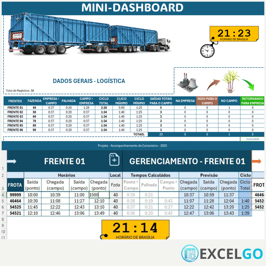Transforme sua gestão logística com a planilha de monitoramento mais ágil do mercado. Desenvolvida em VBA, esta ferramenta foi desenhada para quem não pode perder tempo: registre horários de forma ultra-rápida (digite “800” para “08:00”), conte com preenchimento inteligente de locais e acompanhe cada etapa da viagem — da saída da empresa à chegada na empresa.